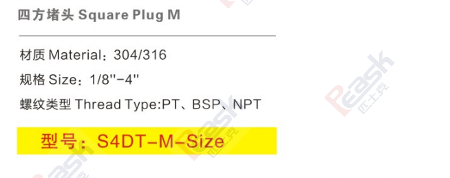 不锈钢外牙四方堵头S4DT-M